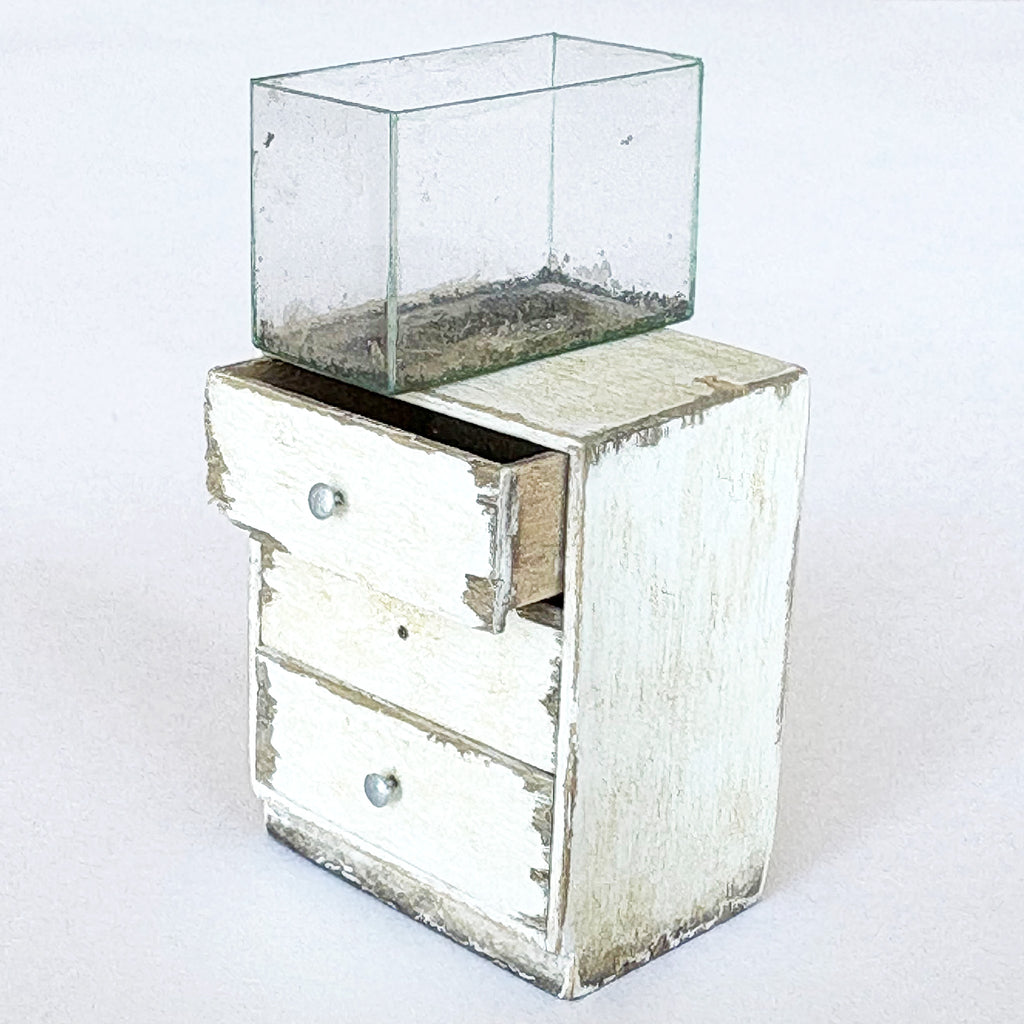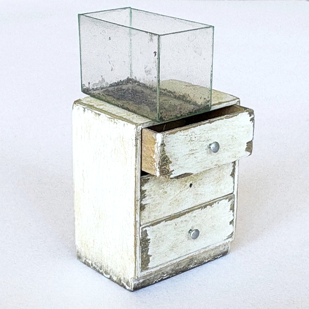 wood, plastic, modelling material, enamel & acrylic, glass case